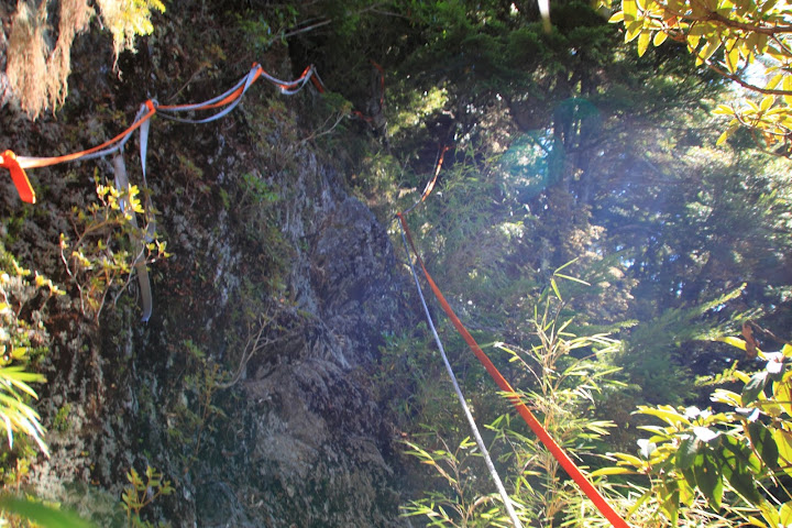 由於崖壁陡峭,須謹慎確定繩子與壁釘牢固後循序而下