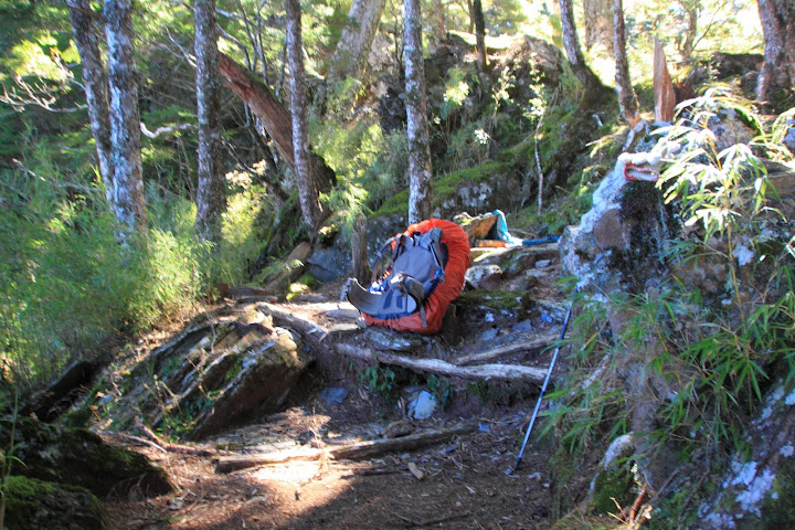 05:10 磐石中峰營地重裝出發(H3055M),箭竹林續行前進→