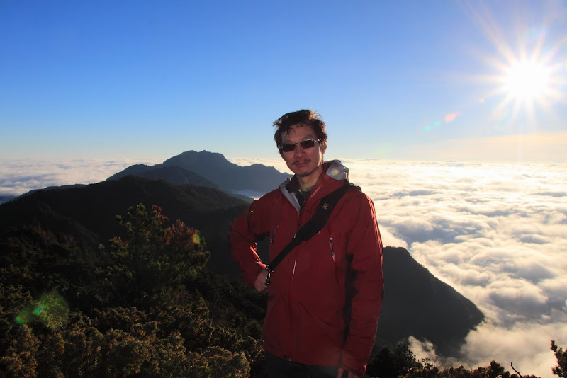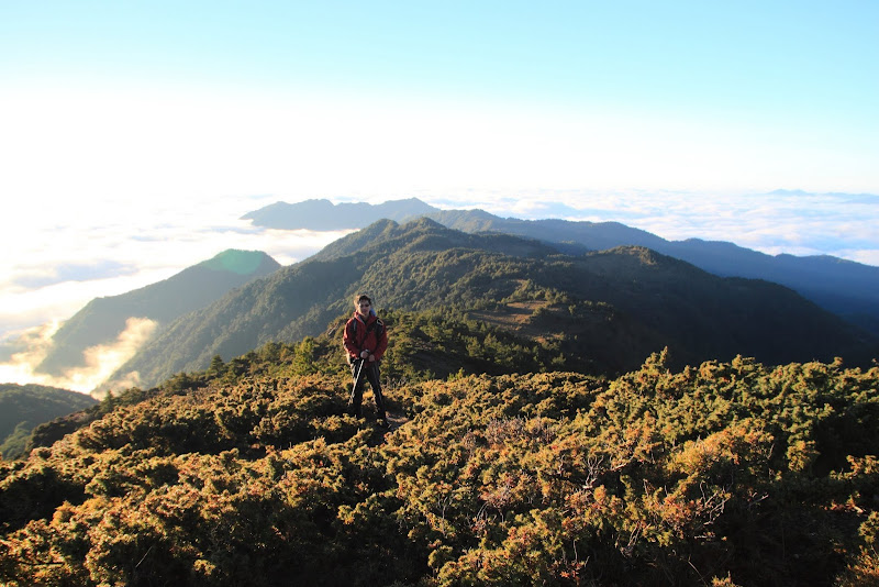 上,在晨曦與日出綻放耀眼光芒的時序搭配下,悸動的心情此刻無法言語。往前再上抵稜