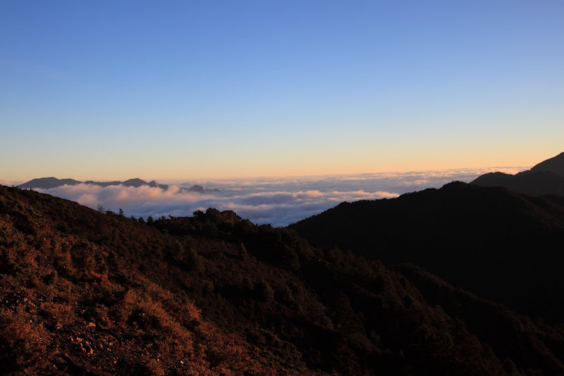 0559,稜線上等待日出前的晨曦與山巒雲海之景