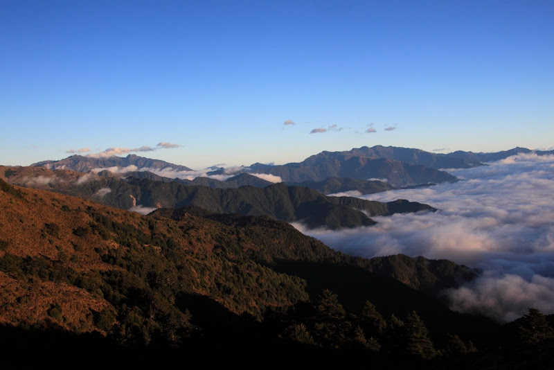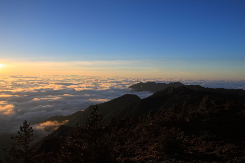 日出後的山巒與雲海