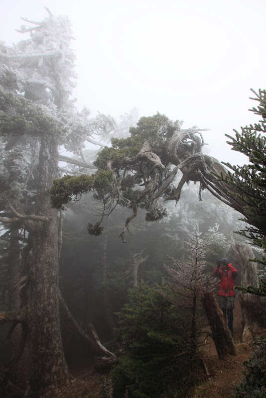 受風面與背風面之灌木叢、圓柏、碎石等等所形成之不同態樣的霧淞更是少見,尤以林間