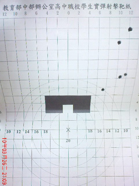 哇! 五發我都有射中耶! 雖然沒打在中央,但至少我的靶紙不是乾淨的 !