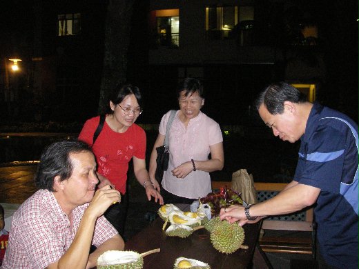 陳公關拿出剛才買回來的榴槤`山竹