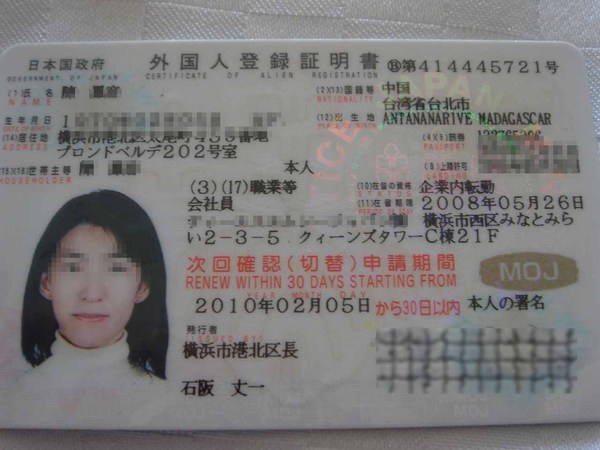 18樓. 哈哈哈2012/12/21 10:19外國人登錄證明書