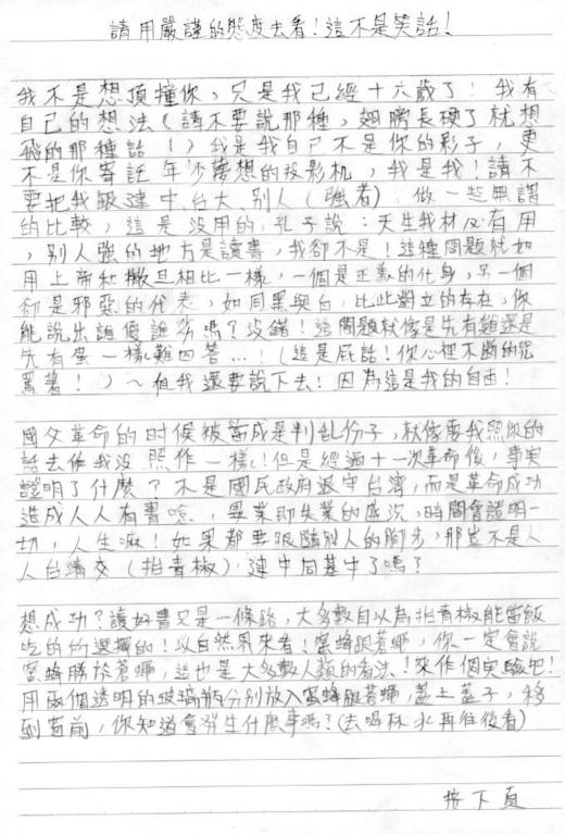 作者寫這封信是為了化解作者跟他爸的誤會