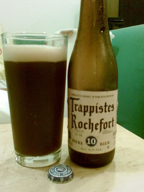 如同以往,在外淘氣大半天的小子累到靠在我身上沒幾個電視畫面就睡著,快如催眠,於是我將沙發墊挪了挪讓兒子好躺,拿了張小毯子蓋在他身上,陪在一旁直確認他睡熟了,這才起身開了瓶修道院啤酒-Trappistes Rochefort 10,滋潤滋潤。