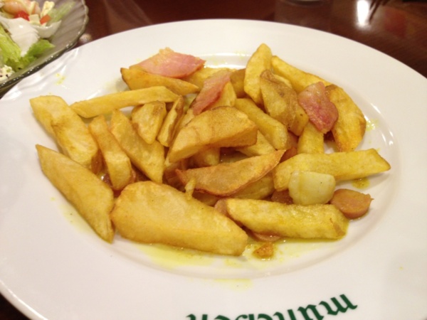 咖哩風味的薯條(好像750日元):咖哩及培根加在一起的風味,吃起來很有日式洋食的味道。