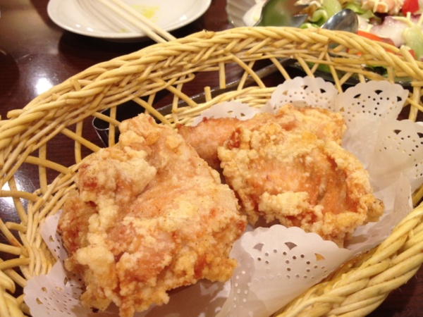 炸雞(約900日元):嫩的不失雞肉原本的纖維感(吃過太多炸雞,不知如何調理的,嫩得完全失去了肉質該有的纖維感),無和風式炸雞的醬油或薑味的口感,也無油ㄏㄠ味,亦無西式炸雞的香料味,經驗上雖算是新鮮的無法以過去經驗分類,但我很喜歡。