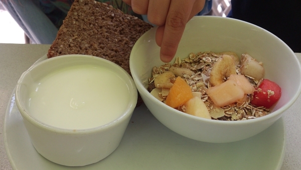 別以為水果就相片中那麼一點,其實有一小碗,只是被兒子拿去吃了。雜糧麵包,和Baker & Spice的很像,不知店家是否自己烘焙。
