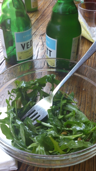 吃一半的沙拉是芝麻葉沙拉,上海西餐很常有,但整份都是芝麻葉的沙拉,這家是頭一次遇到。原本上面還有起司片,淋以油醋醬汁,不習慣的人也許會覺得略酸。