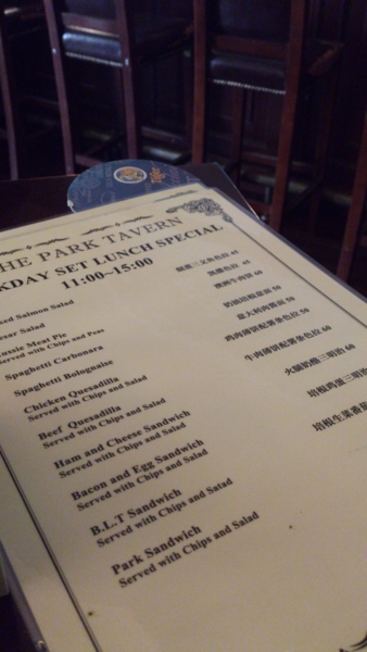週一至週四(或至週五?)中午有午餐配兩杯Tiger啤酒的特惠價,每天不同,印象中最高似人民幣100元。