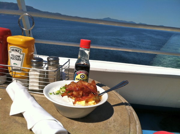 老外船天天供應西式自助餐中國胃最後...西式培根丶嫩蛋丶豆腐丶香腸....全部給他蔥+稀飯加醬油。 -DJ衲嫂