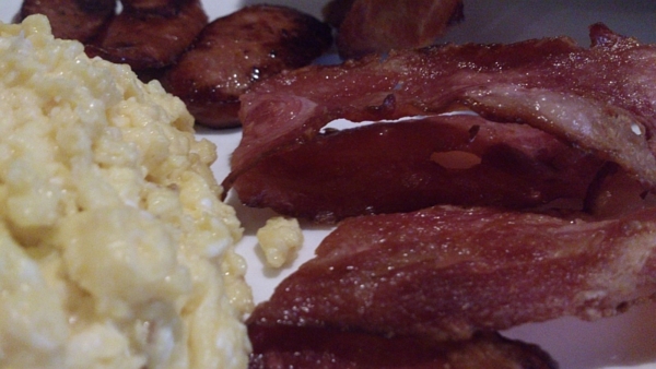 Brunch,炒蛋、培根、香腸。