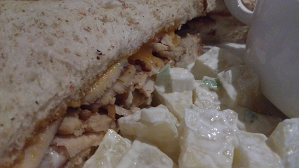 雞肉三明治是燻雞肉。土豆沙拉的土豆(potato)的芯帶點微生,不愛自外軟糊到裡頭的我,頗喜歡。