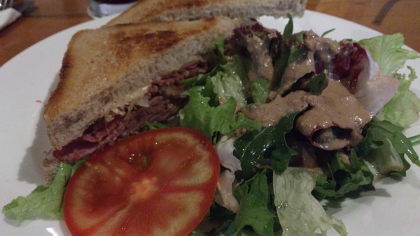 中午套餐的雞肉三明治。當日例湯是蘑菇湯,沙拉選了土豆沙拉(田園、土豆、卷心菜,三選一)。