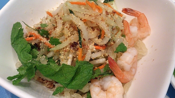 加檸檬汁的雞肉沙拉跟河粉,好吃,尤其炎炎夏日更爽口。