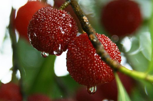 楊梅果上的雨滴..
