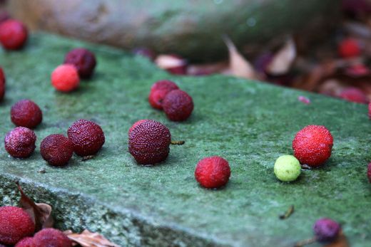 那落滿地的 楊梅 好可惜喲