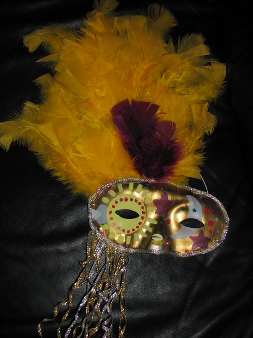 朋友給了大蘿蔔$20元買材料,若還有餘額就當作是大蘿蔔的工錢. Wow!這可讓偶家的大蘿蔔樂壞了,因為這不僅表示阿姨對她畫圖能力的肯定,又是她第一次可以自己賺零用錢.雖然數目不多, 卻是對她的一大鼓勵. 而自從大蘿蔔接下這個工作之後,對於顏料與裝飾配件也有了更深一層的認識. 對她來說真可謂是受益良多. 或許孩子的功力還沒有專業的水準, 但是在她製作面具的過程中,偶們都看到了她的認真看待, 這也是偶們希望她以後面對任何事情都應該持有的態度.粉感謝朋友給大蘿蔔這麼好的學習機會, 代替大蘿蔔謝謝大美女Grace阿姨囉!![]()