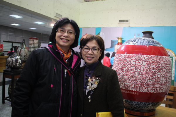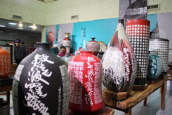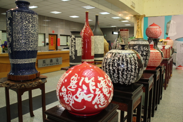 董事長陳文彥說,書法家李元慶老師的書法非常特別,也融合書法文學與雕刻陶瓷,把台灣民謠和戲曲刻在瓷器上,作品精緻。