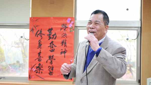 最慷慨理事長黃慶章老師是知名的書法老師,在本次活動中擔任主席兼司儀。他表示,原來「榮欣書畫協會」沒有固定的教室,現在有平鎮會館可以使用,非常感謝總幹事與財務長在各地的努力之下、交涉很久才有此場地。週一是社教館休館的日子,剛好讓樂齡班的學員能夠停車。「社教館最寧靜的時候是我們榮欣最快樂的時候。」黃慶章理事長笑著說。