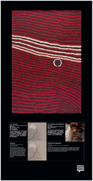 而這些匯集的成果,後來獲澳洲國家博物館(National Museum of Australia)典藏及支持,於澳洲巡迴展出,獲廣大迴響。隨後澳洲國家博物館精選11幅作品將其數位化並開放國際巡迴,頗受好評。本次至文化局展出,供大眾藉澳洲原住民雙眼,看見他們如何透過藝術為族群發聲、記錄屬於他們的歷史故事,並以藝術表述因開發而起的接觸、衝突、適應等故事。