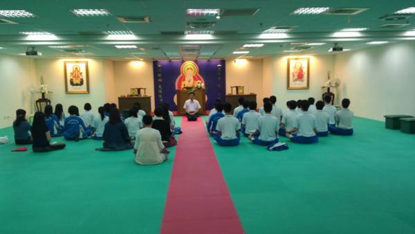 5月19日下午,在邱語妘老師的帶領下,逾百名復旦中學的師生,來到桃園市平鎮區(特力屋旁)禪修會館,參加體驗禪一日行的活動。邱老師是復旦中學禪學社的指導老師;她說:我教的是英文,卻被賦予數理資優班導師的重責大任,難免會令人不知所措與惶恐不安;在內心深處有一個聲音告訴我,我有悟覺妙天師父,師父傳給我清淨法門,與孩子們共同分享,所有的做人做事都要回歸清淨的本心,大學學測75分滿級分,全國第一名,禪修心得就是给孩子最珍貴的禮物。