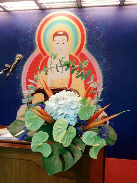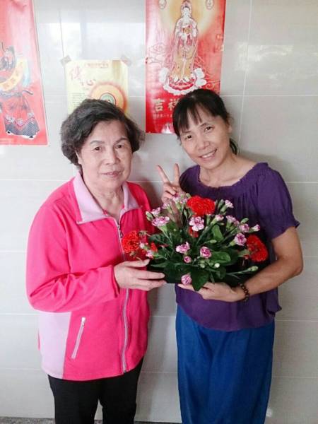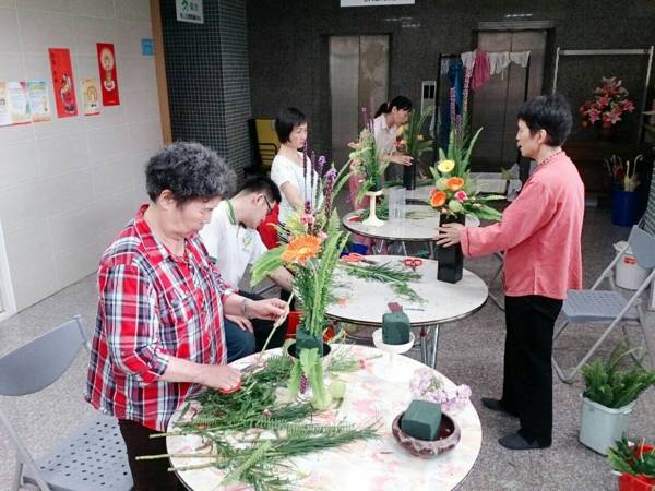 拈花微笑供花社社長陳郁婷,成立社團的主要原因是母親也喜愛插花;家裡的花園裡,一年四季都會有五彩繽紛的花朵盛開,這些花僅供家人欣賞有些可惜,獨樂樂不如衆樂樂;透過插花的方式,可將這些美麗的花,呈現在佛堂、辦公室、會議室、會場等各場所,讓更多的人共同來欣賞;感受花朵強韌生命力,聞到了花的香氣,繽紛燦爛的花瓣,好美!無形中帶给人愉悦的心情與充沛的活力;於是我明白體會,這花盆裡的一草一木,枝枝葉葉都充滿驚喜,盆裡的花好美,郁婷及其母親和供花社社員們,像黑暗中的蠟燭一樣,燃燒自己,照亮別人,這種慈悲的心比花更美,也更令人動容!