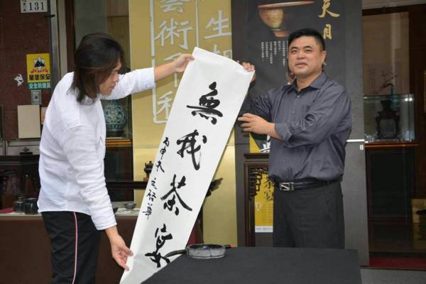 毛啟華理事長表示,書法線條充滿禪的韻味,與茶的精神不謀而合,因此結合兩者,希望社會大眾一同來靜慮心靈,創造祥和有氣質的社會風氣。