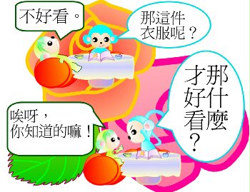 中間那圖裡黃猴子躺在紅椅子上說「不好看」