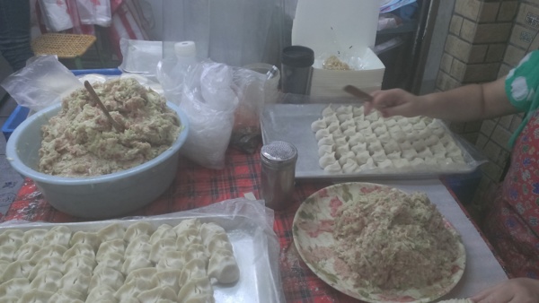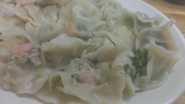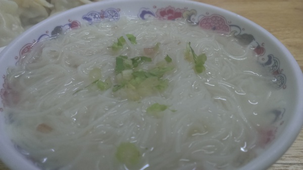除了米粉湯以外還有賣手工的水餃,高麗菜、朴瓜、韭菜一共三種口味,每個水餃裡面都有一隻蝦仁,這樣的水餃竟然一顆只要5塊錢,沒有蝦仁的一顆只要3.5,在現在這個物價來說是多麼便宜,平常去吃鍋貼店的水餃有蝦仁的一顆就要7塊錢。