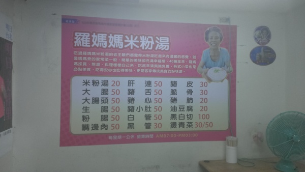 除了賣青菜和肉以外,傳統市場內也有不少小吃攤,這家羅媽媽米粉湯要特別介紹。才剛走進去市場就可以發現羅媽媽米粉湯的旁邊排了很多人,想要吃還得排隊。