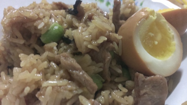 另外還有素油飯和溏心蛋,油飯裡面有加豌豆、芋頭、素肉、香菇,把芋頭煮的非常鬆軟入口即化,飯粒是粒粒分明的。他的溏心蛋一開始吃覺得沒什麼味道,但是越嚼越會發現有一股煙燻的味道從口中飄出,越嚼越濃的味道,讓人想要吃第二顆。平常我最討厭吃蛋黃,但是半熟的蛋黃散發出甜味,不像茶葉蛋的蛋黃又乾又難以入口。