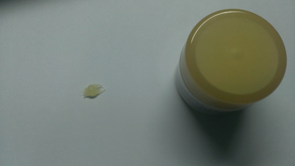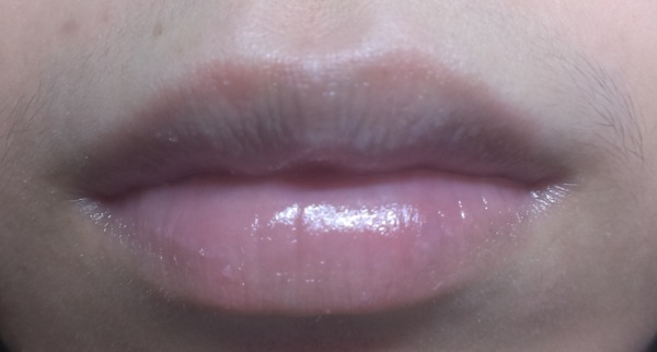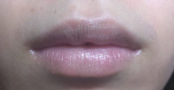 上了以後大概像這樣,很像擦凡士林在嘴唇上,但是沒什麼味道,它本身是暗黃色的,所以白天用比較不好看。