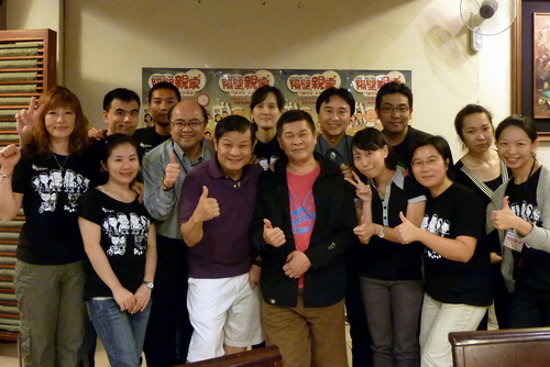 ◎我在圖片後排右四。攝於《隔壁親家》首演結束慶功宴,與主角澎恰恰、許效舜、音樂時代同仁們合照。