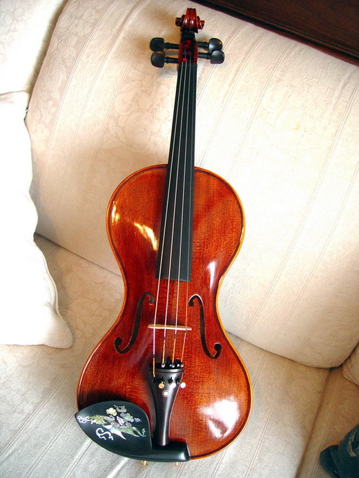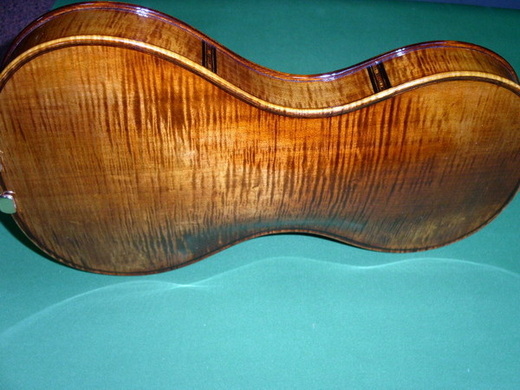 這是一把怪琴,最大的特點是它並沒有小提琴特色的角邊(Corner Block) ,只有像人體般的雙曲線。很漂亮,但我第一個印象是想到被截去雙耳的機械貓小叮噹。