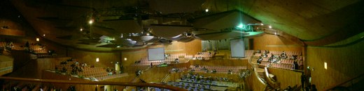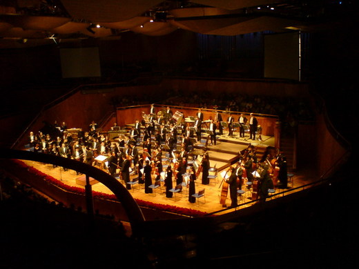 本來還想拿手機上上網的,誰知道星海音樂廳那么先進,還有移動電話信號屏蔽器。本來是音樂會的,可是我左邊坐的兩位女士卻死死地看著投影剪輯的宮崎駿動畫,還不停地笑。
