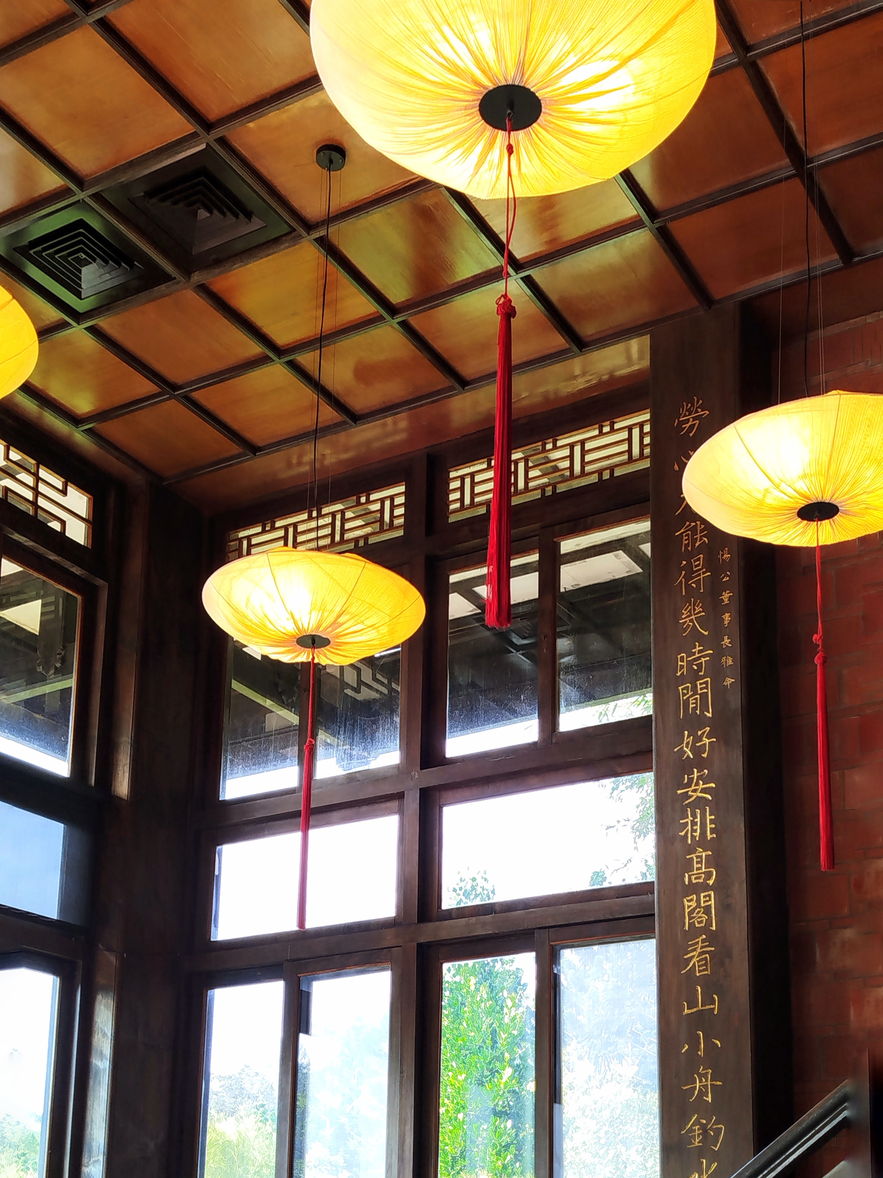 尤其長廊木柱上,鐫刻的金體楷書,氣度恢弘,很美。