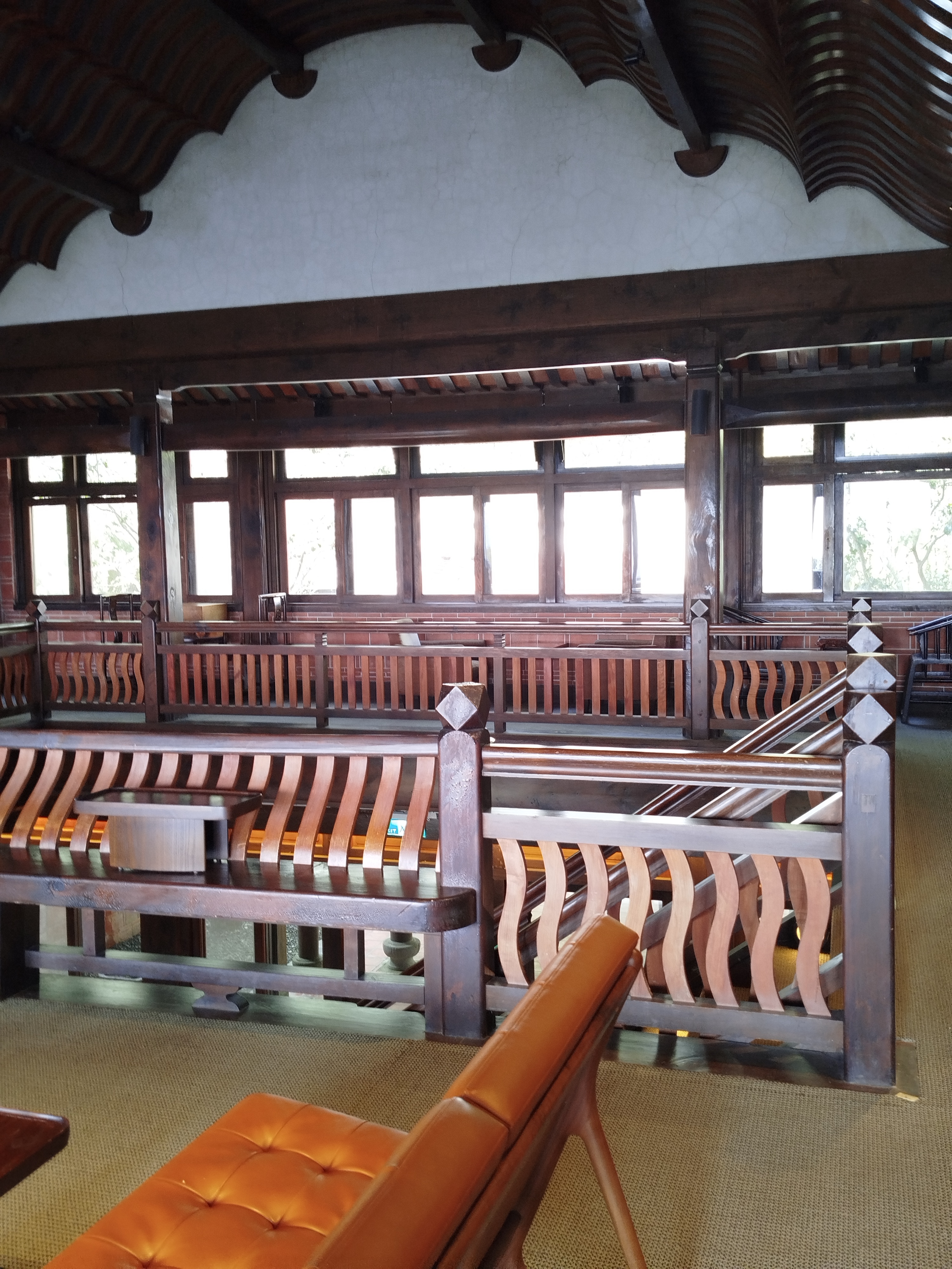 導覽說因受法規限制,無法像在日本時可完全不用一根釘子接合。
