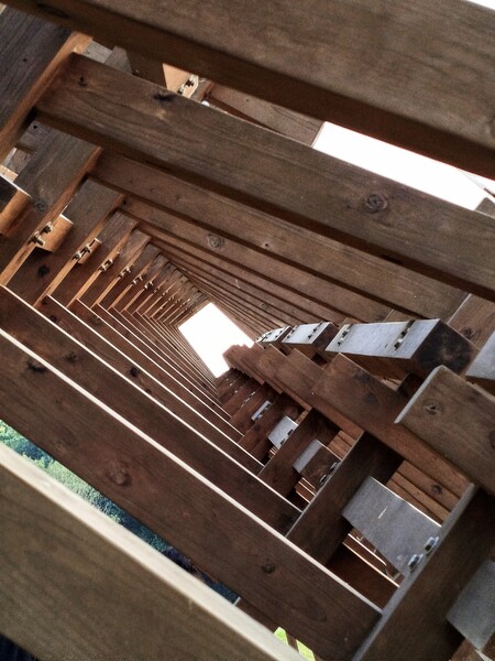 站在公共空間外的長廊遠望前方,有「欲窮千里目,更上一層樓」之感。微風輕拂,竟生些許倦怠?
