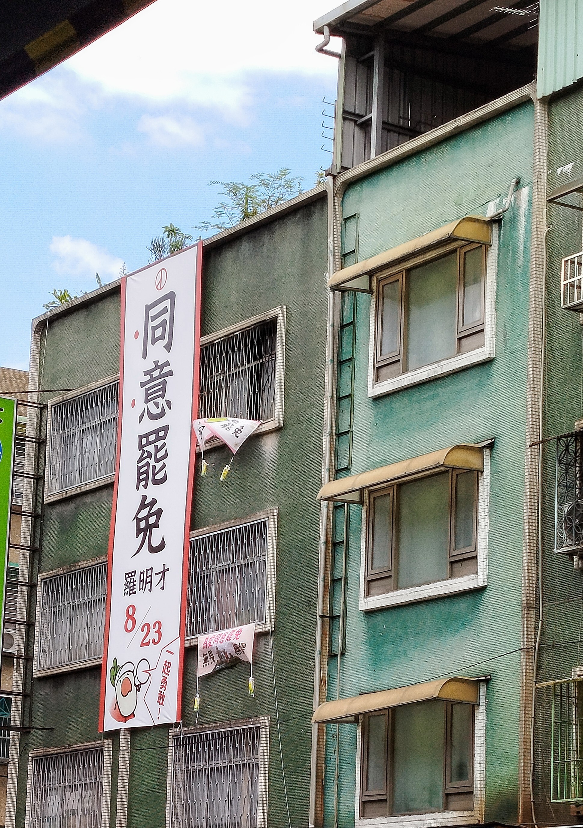 所以,垂掛之大帆布,有可能一是住戶本身自用的房子,或二已收到外牆廣告費。這種現象在選舉期間最明顯,所以我若有一塊地,便有機會在選舉期間賺一筆「選舉廣告財」,反正閒置也是閒置。