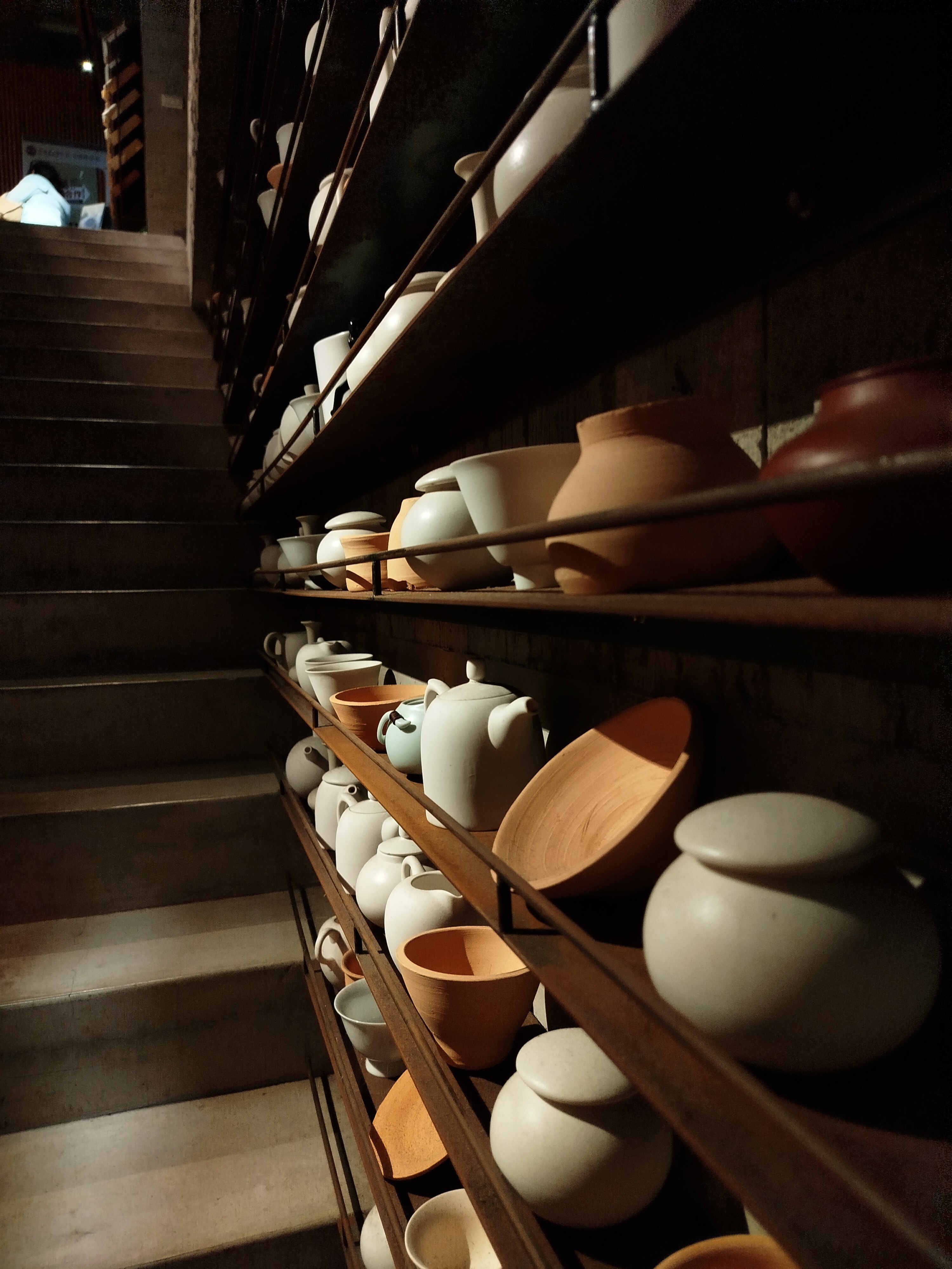 牆邊架子上的茶具我想是裝飾、待售展示的功能皆有吧。