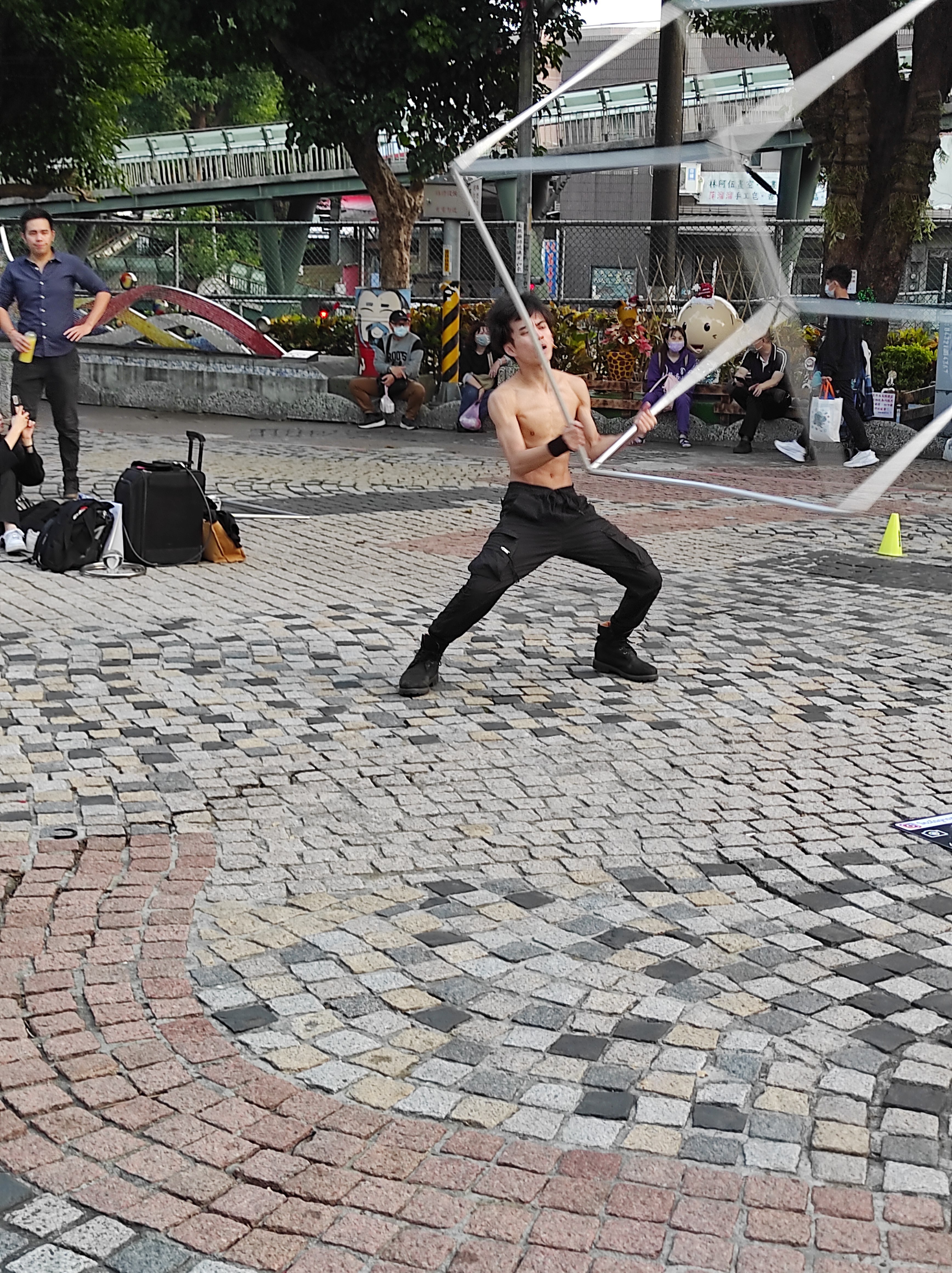 這段表演前是變魔術,由同一人演出,我看了好一陣子。現場觀眾最多時應有百餘人,很多人都不吝掏錢鼓勵,我也給了一百。