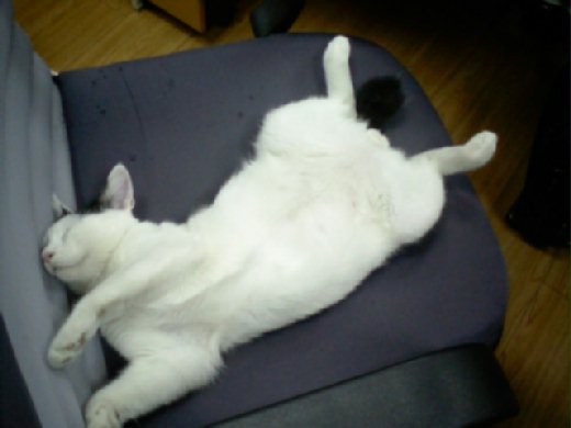 之前養在辦公室時,常常同事椅子一拉開就會發現有隻胖貓正睡的香甜。