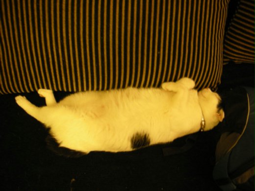 現在養在家裡,家裡其他貓都是捲成一團睡,就只有牠老愛袒胸露肚皮。