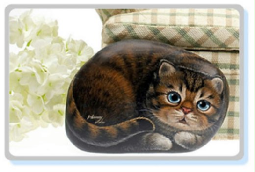 彩繪的石頭貓咪,運用素材平凡無奇,但看繪者筆端功力,傳神是主題,擺飾的