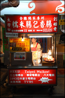 如果不是因為去吃曼谷燒,每一回坐在曼谷燒店內往外看,都會被糯米腸包香腸的攤子前川流不息的購買人潮吸引;久聞糯米腸包香腸大名許多年,即使社團好朋友海豹每一回社團活動完都邀人一起去吃糯米腸包小腸,卻不曾參予、亦未曾吃過的大帥小傻根本不會興起購買的欲望。