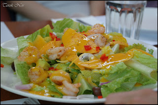 因為小傻皮膚不好,很堅決的沒有夾芒果來吃,但除去芒果以外的所有萵苣、甜椒等青菜上都沾滿了店家特製的芒果沙拉醬,讓想吃芒果卻又不能吃的小傻在品嚐其他青菜時,也能嚐到芒果酸酸甜甜的好滋味!