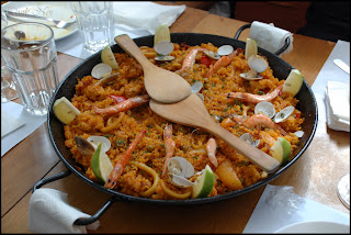 一大群人聊天聊很久之後,望穿秋水的西班牙海鮮燉飯終於上桌了!